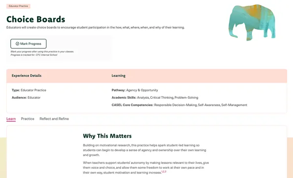 We’ve also included samples of a schoolwide practice, educator practice, and student activity for you to explore.