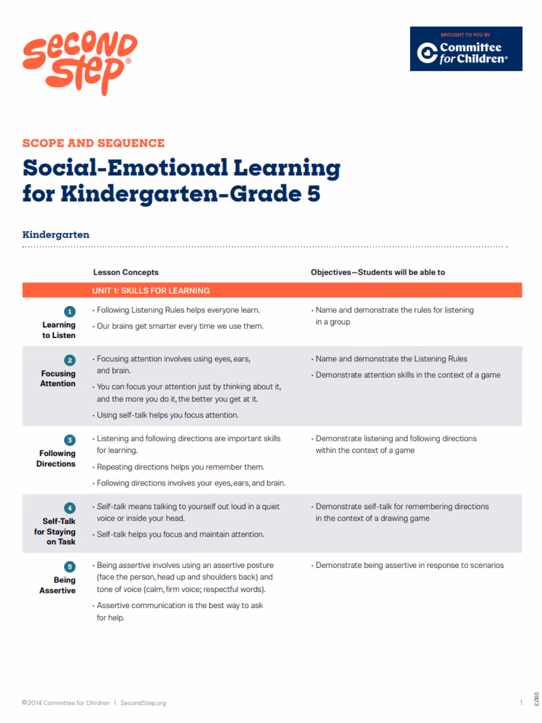 Second Step® Classroom Kit K-5 Scope & Sequence Full Version