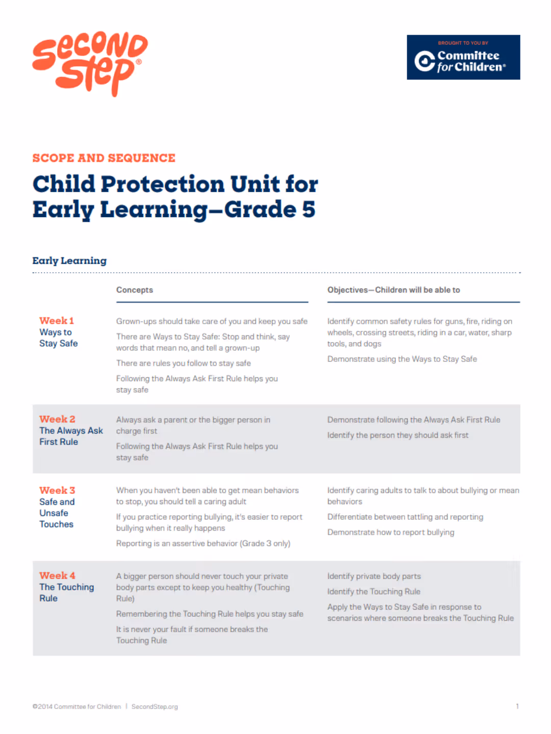 Second Step® Early Learning Scope & Sequence Short Version