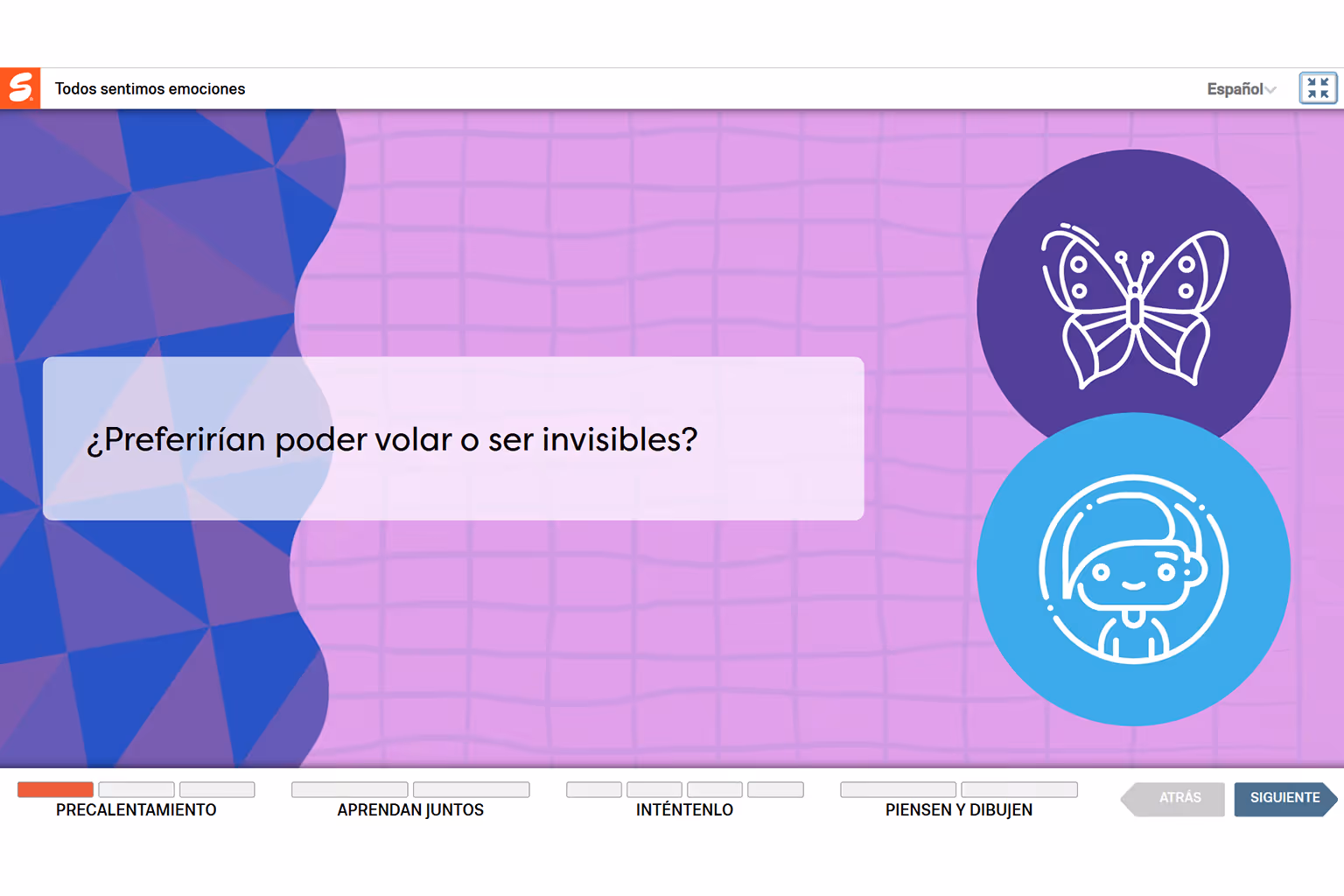 Second Step® K–8 digital programs are designed to support students in the language they learn best. Both our universal lessons and small group lessons can be taught in English or Spanish, giving educators the flexibility to deliver consistent human skills instruction without switching tools, reworking content, or compromising instructional quality.